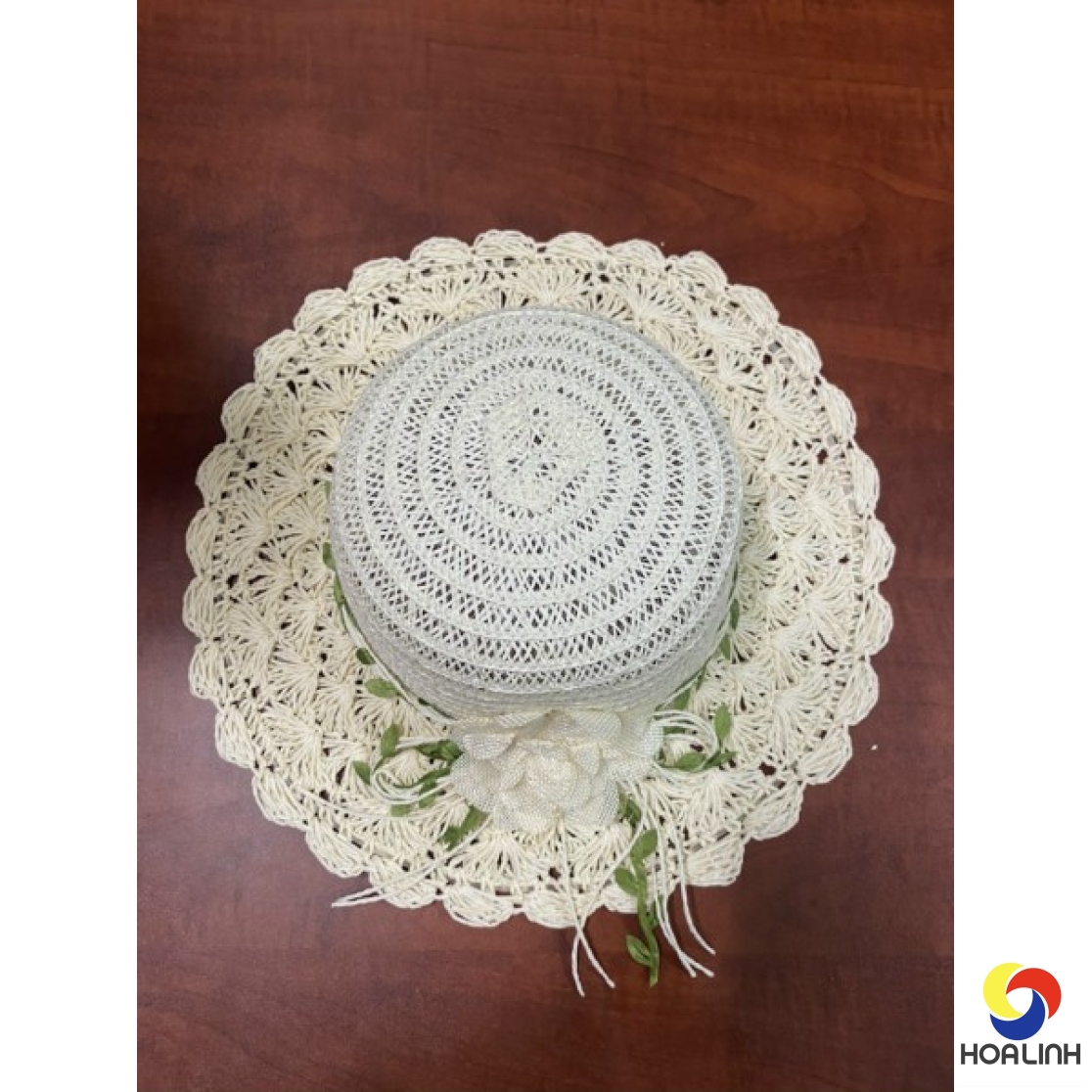 Nón vành đính thêu hoa lớn